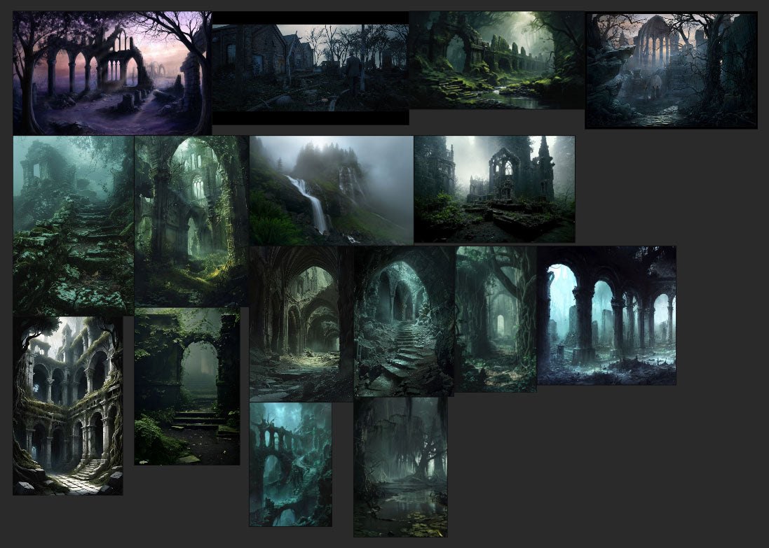 These images are to get an idea of what the scene will look like initially. It will be dark, moody and lifeless.